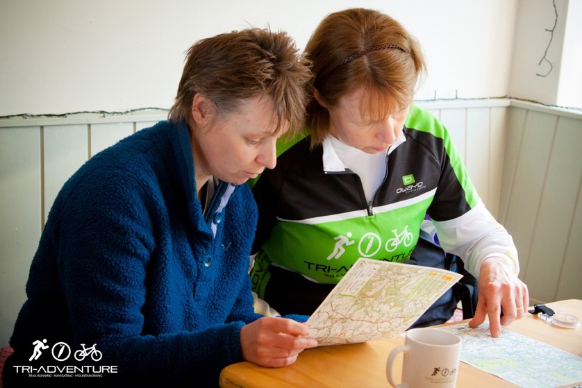The “Tri” relates to running, mountain biking, and navigation – so, there’s no swimming, unless you fall into a pond while looking for one of our check points!